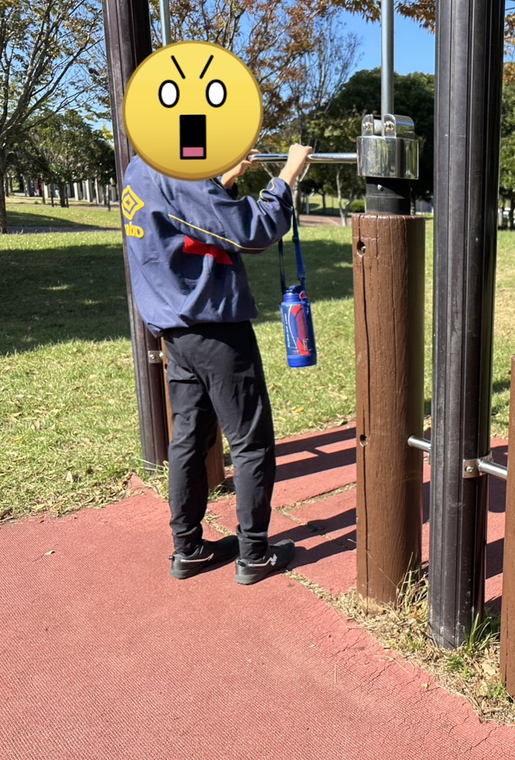 途中、健康器具があり「やってみる〜」と言いバーベルを持ち上げたりしていました!!