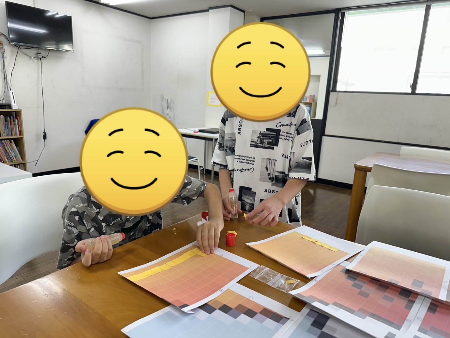 作品展の作品作りチームは集中して画用紙を台紙に貼ることができました!!