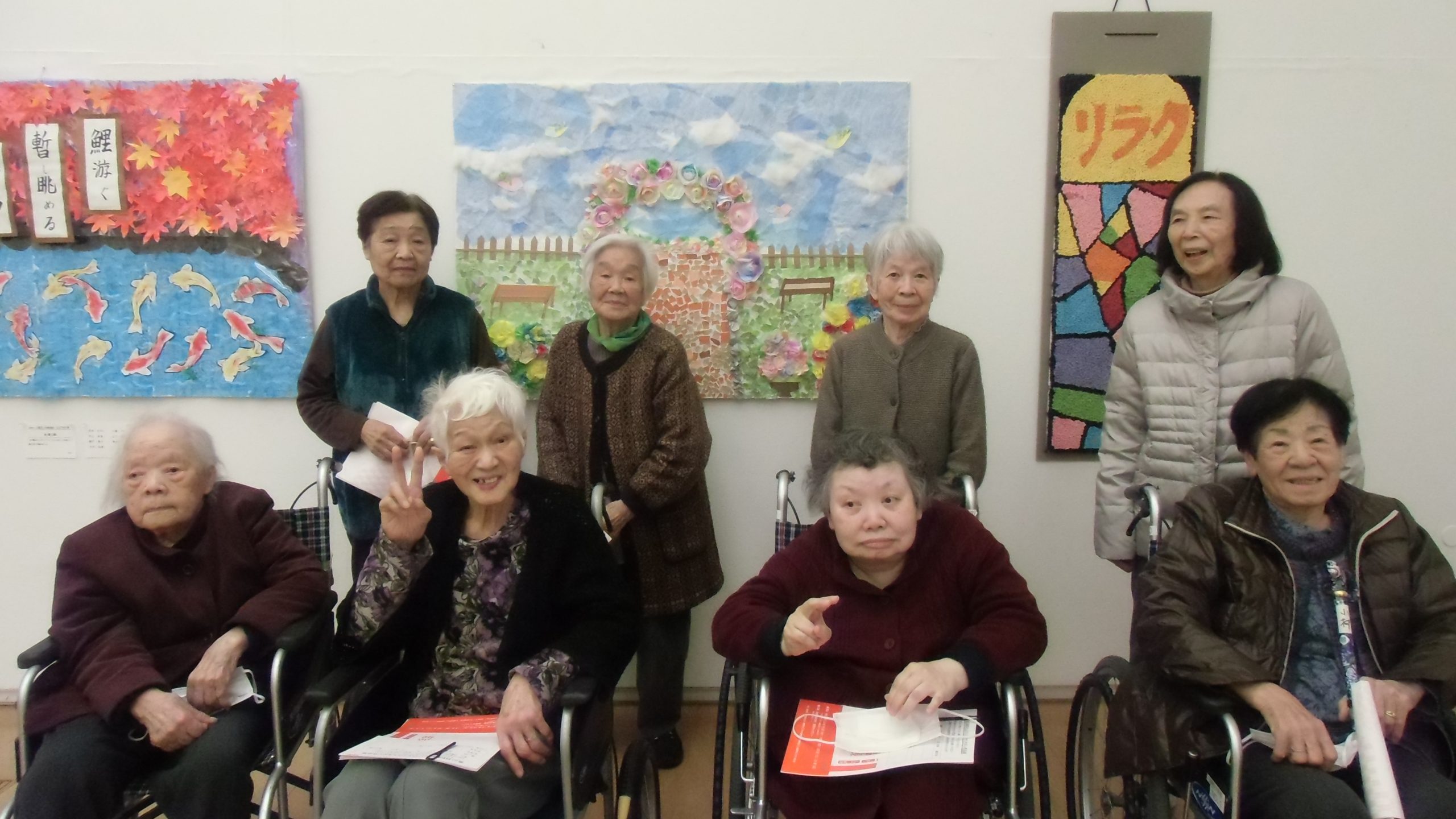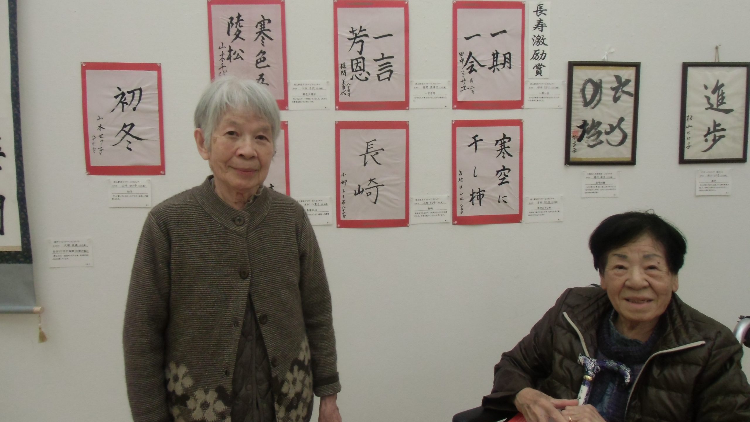 浦上駅前デイサービス(高齢者)センターです。12月に行われた生きがい作品展の見学に、県立美術館まで行ってきました。半年前から 絵画・書・工芸などに取り組まれ、それぞれ得意分野を活かされていました。102歳のご利用者の方は 書をだされて 長寿激励賞を頂き 本人様も喜ばれていました。来年度も、ご利用者の方と一緒に取り組んでいきたいです。